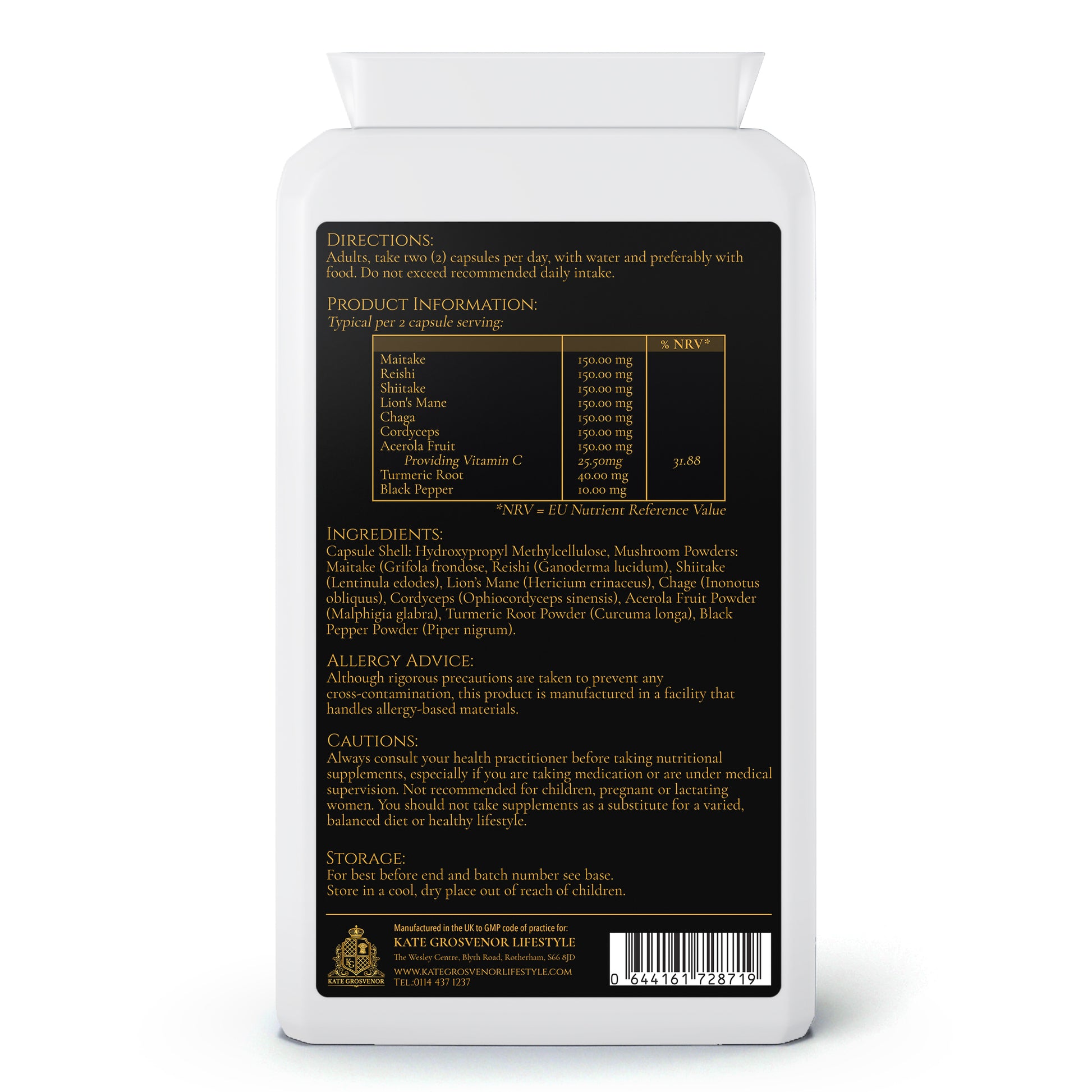 Maitake, Reishi, Shiitake, Chaga & Cordyceps – time-honoured mushrooms known for their immune-modulating, adaptogenic, and energy-supporting properties