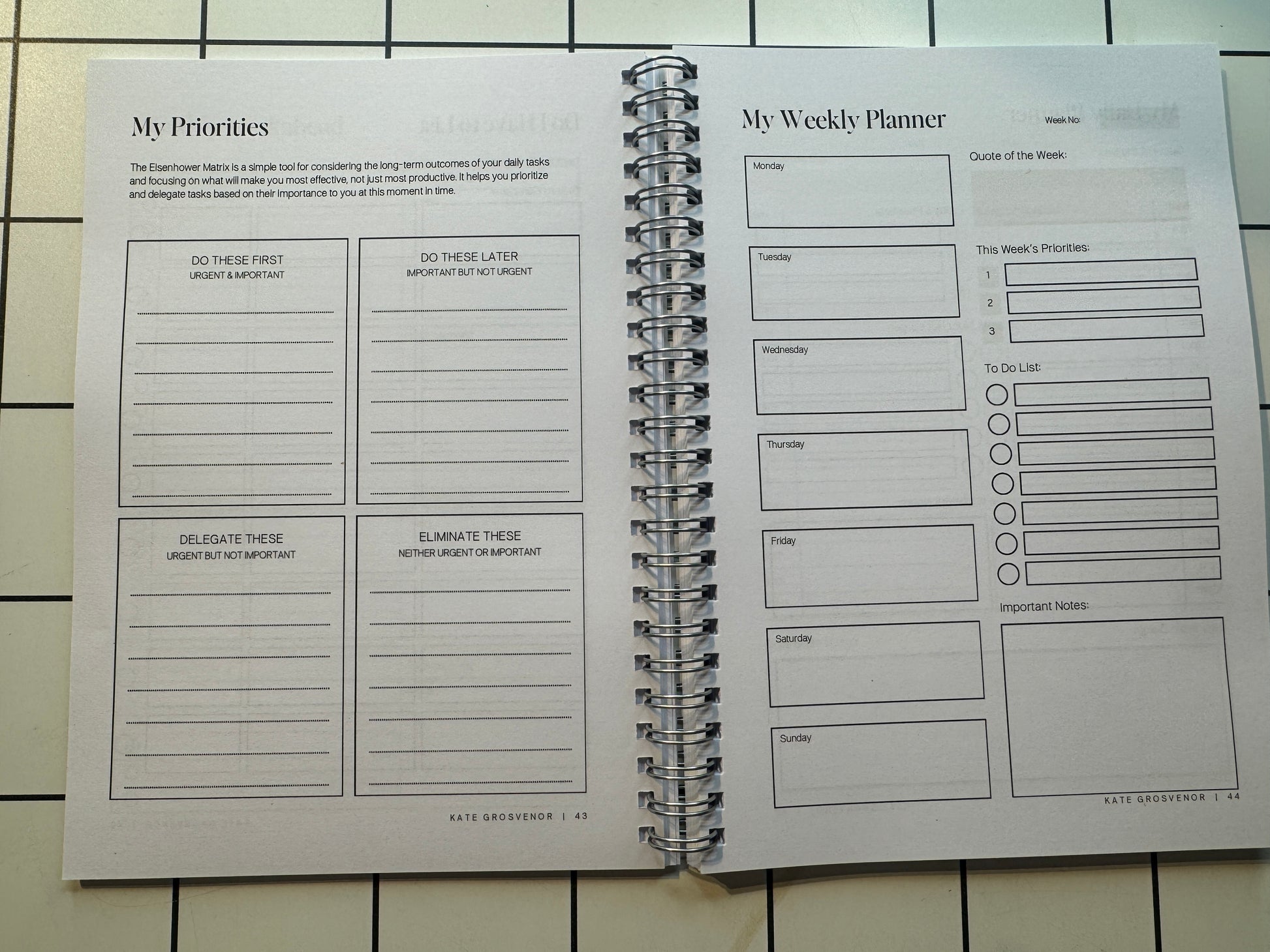 Using a clear priorities framework, this section helps you stop defaulting to yes, recognise what truly matters, and allocate your time based on importance — not guilt or expectation. In perimenopause, energy is a finite resource, and this planner treats it that way.